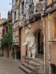 But we were happy just wandering round the streets of timber-framed houses with their wooden carvings and arcades or their stone mansions with sculpted lions’ heads and huge gates opening into courtyards. In tiny shops we could see woodwind instruments being repaired, chocolates, pianos, a distillery, or antiquities (if a paint-blotched step ladder and piles of old magazines really count as antiques). We encountered fountains and statues (like the surprising Compteur du temps by Gloria Friedmann), and a carousel from 1900. We saw a memorial to a resistance hero, but no plaque marked the six-storey former Gestapo headquarters. We would have missed the tiny stone owl on a cathedral buttress had it not been for the passers-by touching with their left hand and lifting up children to have their wishes granted; over the ages it has been polished and worn till it is almost unrecognisable as an owl. But a replica of Pompon’s statue of a white polar bear in the park was very recognisable, despite the children climbing on it.